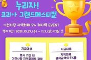(케이엠뉴스) 이천시는 행정안전부 주관 ‘2025 코리아그랜드페스티벌(KOREA GRAND FESTIVAL)’에 맞춰 지역화폐 이용을 촉진하고 지역 상권을 활성화하기 위한 ‘이천사랑 지역화폐 캐시백 5% 이벤트’를 추진한다고 밝혔다. 이번 행사는 10월 29일부터 11월 9일까지 12일간 전국에서 동시에 개최되는 코리아그랜드페스티벌 소비촉진 캠페인의 하나로, 이천시는 국비 1억 5천만 원을 확보해 사용자 충전금으로 결제한 금액에 한정해 결제금액의 5%를 적립금(인센티브, 정책수당 등으로 충전된 금액 사용분은 지급 대상에서 제외)으로 지급한다. 이용자는 이천사랑지역화폐를 통해 1인당 최대 20,000원까지 5% 적립금을 받을 수 있으며, 별도의 신청 절차 없이 자동으로 지급된다. 지급된 적립금의 사용 유효기간은 5년이며, 이천시 지역화폐 가맹점에서 자유롭게 사용이 가능하다. 이천시는 이번 행사를 통해 시민의 실질적인 소비 혜택과 지역 상권 활성화를 동시에 도모할 계획이다. 김경희 이천시장은 “코리아그랜드페스티벌 이천사랑지역화폐 캐시백 이벤트를 통해 지역 소비가 활발히 이어지고, 소상공인 매출 회복의 기회가 되길