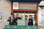 (케이엠뉴스) 구리시 수택2동은 지난 12월 18일 지역사회 이웃사랑 실천의 하나로 구리중앙교회와 국제구호단체 ‘기아대책’이 함께 마련한 희망 상자 46박스를 전달받았다. 희망 상자에는 5만 원 상당의 식료품과 생필품 등이 고르게 담겨있으며, 관내 저소득층과 청장년 1인 가구 등 다양한 이유로 생활에 어려움을 겪고 있는 취약계층 가구에 전달될 예정이다. 장영훈 구리중앙교회 목사는 “겨울철 경제적으로 어려움을 겪는 이웃들에게 작은 온기라도 전하고자 기아 대책과 함께 이번 나눔에 참여하게 됐다.”라며, “앞으로도 지역사회를 위해 지속적인 나눔 활동을 이어가겠다.”라고 마음을 전했다. 박정희 수택2동장은 “본격적인 한파로 취약계층의 어려움이 더욱 커지는 시기에 실질적인 도움을 전해 주셔서 큰 위로와 힘이 된다.”라며, “앞으로도 지역 내 누구도 소외되지 않도록 다양한 복지자원 발굴과 민관 협력을 통해 촘촘한 복지 안전망을 구축해 나가겠다.”라고 감사의 마음을 전했다. 한편, 기아대책의 ‘희망 상자 캠페인’은 NGO, 교회, 지자체가 협력해 지역사회 취약계층 및 위기가구에 생필품 꾸러미를 지원함으로써 희망