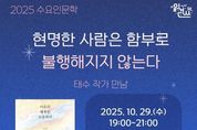 (케이엠뉴스) 인천광역시교육청서구도서관은 10월 29일 오후 7시부터 9시까지 『어른의 행복은 조용하다』의 저자 태수 작가를 초청해 ‘수요인문학’ 강연 ‘현명한 사람은 함부로 불행해지지 않는다’를 진행한다. ‘수요인문학’은 서구도서관이 2020년부터 운영해온 대표 인문학 프로그램으로, 올해 하반기부터는 대면과 비대면 방식을 병행해 운영되고 있다. 이번 강연은 함께읽기 프로그램과 연계해 도서관 1층 북카페에서 진행되며, 태수 작가가 일상 속 작은 행복과 마음의 균형을 주제로 강연한다. 참가 신청은 10월 17일 오전 10시부터 가능하며, 자세한 사항은 서구도서관 누리집 또는 독서문화과로 문의하면 된다.