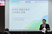 경기도의회 농정해양위원회 방성환 위원장(국민의힘, 성남5)은 31일 이천시 농업기술센터에서 열린 「2025 외국인 계절근로자 고용주 교육」에 특강 강사로 참여해, 외국인 근로자 인권 보호와 고용관계 법규 준수의 중요성을 강조했다. 이번 교육은 경기도 농업 현장에서 외국인 근로자 고용이 늘어나면서, 고용주의 인식 개선과 법적 의무 이해를 통해 안정적인 근로환경을 조성하기 위한 목적으로 마련됐다. 경기도 12개 시군을 순회하며 진행되는 이번 교육에는 약 800명의 농업 고용주가 참여하고 있으며, 이날 이천 교육에는 약 100명의 지역 농업인이 참석했다. 공인노무사로서 노동·고용 분야의 전문성을 겸비한 방 위원장은 「농어업 고용인력 지원 특별법」 개정 주요 내용, 근로기준법 및 숙식비 공제 기준, 인권침해 예방, 산업재해보상보험 적용 범위 등 농업 현장에서 반드시 숙지해야 할 실무 중심 법률 내용을 주제로 강의했다. 방 위원장은 강연에서 “외국인 근로자는 농촌의 인력난을 해결하는 핵심 파트너이자 함께 살아가는 지역사회의 구성원”이라며, “고용주는 단순한 고용주가 아니라 근로자의 안전과 인권을 지키는 공동체의 책임자라는 인식이 필요하다”라고 강조했다. 이어 “최근