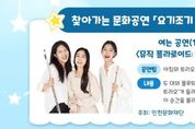 (케이엠뉴스) 인천광역시교육청화도진도서관은 10월 25일 오후 12시 30분, 평생학습1실에서 찾아가는 문화공연 ‘요기조기 음악회’를 개최한다. 이번 공연은 인천문화재단이 주관하는 ‘삶의 일상 공간 예술화 프로젝트’의 일환으로 문화와 예술이 일상이 되는 즐거운 도시 인천을 구현하기 위해 마련됐다. 공연에는 ‘아침의 트리오’가 참여해 두 대의 플루트와 한 대의 피아노로 구성된 편안하고 싱그러운 음악을 선보일 예정이다. 참여 신청은 10월 15일 오전 9시부터 화도진도서관 누리집에서 가능하며 자세한 사항은 화도진도서관 독서문화과로 문의하면 된다.