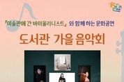(케이엠뉴스) 인천광역시교육청서구도서관은 10월 문화의 달을 맞아 오는 25일 오후 2시부터 3시까지 가재울꿈어린이도서관 1층 북카페에서 ‘도서관 가을 음악회’를 개최한다. 이번 음악회는 『미술관에 간 바이올리니스트』의 저자 이수민 바이올리니스트의 해설과 함께하는 현악 3중주 공연으로 전 연령이 함께 즐길 수 있는 가족형 클래식 무대로 꾸며진다. 비올라 견지아, 첼로 장효정이 함께해 베토벤의 ‘그대를 사랑해’, 엘가의 ‘사랑의 인사’ 등 대중에게 친숙한 클래식 곡들을 선보일 예정이다. 공연 참여는 10월 15일 오전 10시부터 서구도서관 누리집에서 신청할 수 있으며, 자세한 사항은 서구도서관 누리집을 참고하거나 독서문화과로 문의하면 된다.