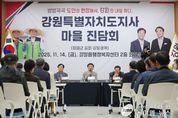 (케이엠뉴스) 김진태 강원특별자치도지사는 '강원특별법' 군사특례를 활용한 첫 권한 행사로 지난 3월 군사규제 개선 성과를 거둔 철원군을 11월 14일 방문해 도지사 ‘마을진담회’(진솔한 +간담회)의 네 번째 자리를 마련했다. 이번 진담회는 주민과의 소통을 강화하고, 현장의 의견을 보다 폭넓게 듣기 위해 철원군을 김화·갈말권역과 철원·동송권역의 두 개 권역으로 나누어 진행했다. 이날 행사에는 김진태 지사를 비롯해, 한기호 국회의원(춘천, 철원, 화천, 양구을), 이현종 철원군수, 김정수·엄기호 도의원, 이장, 주민자치위원, 노인회 등 각계각층의 주민 300여 명이 참석해 뜨거운 관심 속에 진담회가 시작됐다. 이현종 철원군수는 “이번 방문은 지사님께서 철원을 아끼고 주민의 애로사항을 듣고 신속히 반영하고자 하는 마음의 표현”이라고 말했다. 이어 “철원군은 군사규제 100만평 완화, 농업진흥지역 3만 4천 평 해제 등 규제 개선의 가시적 성과를 이뤄냈다”고 설명했다. 또한, “수돗물 하수처리시설 개선을 위해 도비 약 60~70억 원을 지원받아 추진 중이며, 신철원과 와수 지역은 그동안 여건상 시행하지