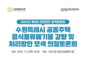 (케이엠뉴스) 수원특례시의회 환경안전위원회는 11월 6일, 오후 2시, 수원시청 별관 1층 중회의실에서 ‘공동주택 음식물류폐기물 감량 및 처리방안 모색을 위한 의정토론회’를 개최한다고 밝혔다. 음식물류폐기물, 즉 음식물쓰레기는 단순히 악취와 수거 문제를 넘어 매립이나 소각으로 인한 2차 환경오염을 일으키고 기후위기에도 악영향을 미치고 있기 때문에 이번 토론회는 음식물쓰레기 발생을 원천적으로 줄이고, 발생된 쓰레기를 보다 효율적으로 자원화하기 위한 기술 중심의 대응 방안을 고민하는 자리이다. 이를 위해 ▲음식물류폐기물 감량 및 처리 과정에서의 기술 동향 ▲타 지자체의 적용 우수 사례 ▲수원시의 음식물류폐기물 처리 현황 등을 공유하고 전문가, 시민과 함께 지속 가능한 음식물류폐기물 관리 체계를 구축하는 데 필요한 제도, 예산지원 등에 대해서도 논의할 계획이다. 환경안전위원회 채명기 위원장은 생활폐기물 처리 비용 절감과 자원 재활용 확대를 위한 정책 제안에 힘써왔으며 이번 토론회에서는 좌장으로서 지정토론을 진행할 예정이다. 채명기 위원장은“음식물쓰레기는 단순한 폐기물이 아니라, 기술과 정책의 융합으로 충