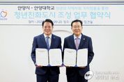 (케이엠뉴스) 안양시와 안양대학교가 청년친화도시 조성을 비롯한 다양한 청년정책 추진을 위해 협력에 나섰다. 시는 12일 오전 9시 20분 안양시청 3층 상황실에서 안양대학교와 ‘청년과 함께하는 지역사회 가치창출 상호협력을 위한 업무협약(MOU)’을 체결했다. 이번 협약에 따라 양 기관은 지역사회의 청년 현안 해결 방안을 함께 모색하고, 청년친화도시 조성을 위한 각종 청년정책 사업을 추진하는 과정에서 긴밀히 협력하기로 했다. 특히 ▲안양시 청년사업(청년친화도시 조성・청년네트워크 등) 참여 및 지원 ▲안양대학교 주관 지역사회 가치창출 프로그램 행정적 지원 및 협력 ▲청년정책 활성화를 위한 지원 및 대외홍보 등에 대해 적극 협력하기로 했다. 시는 이번 협약을 통해 청년들이 지역사회에서 안정적으로 자립하고 도전할 수 있는 기반을 마련하고, 청년친화도시 조성을 실현해 나간다는 방침이다. 이날 협약식에는 최대호 안양시장을 비롯한 관계 공무원, 장광수 안양대학교 총장, 안양대 관계자 등이 참석했다. 최대호 안양시장은 “청년이 행복해야 도시가 발전할 수 있다”며 “이번 협약은 안양시와 안