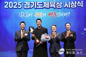 김진경 경기도의회 의장(더민주·시흥3)은 16일 오후 경기도청 다산홀에서 열린 ‘2025 경기도체육상’ 시상식에 참석해 도내 체육인들의 성과를 격려하고 유공자들에 대한 감사를 밝혔다. 경기도체육회(회장 이원성)가 주최·주관한 이번 시상식은 각종 국내외 대회 참가자 및 도내 체육 발전을 위해 이바지한 유공자를 위해 마련됐으며, 체육진흥유공·학교체육유공·전문체육진흥·생활체육진흥·학교체육진흥 등의 부문에서 142명이 수상의 영예를 안았다. 이날 기념식에서 김 의장은 축사와 함께 우승배 봉납과 체육 유공단체에 대한 표창을 수여했다. 김진경 의장은 “동계체전 22연패, 부산 전국체전 종합우승 4연패 등 경기도 체육은 늘 새로운 역사를 써오고 있다”라며 “그 어떤 화려한 수식어보다 선수 여러분의 정직한 땀이 만든 결과이기에 더욱 값지고 위대하다”라고 밝혔다. 이어 “여러분이 흘린 땀방울은 우리 도민에게 감동과 용기가 되었고 경기도를 하나로 묶는 단단한 매듭이 되었다”라며 “경기도의회는 선수 여러분이 더 힘차게 꿈을 향해 달려갈 수 있도록 더 세심히 살피면서 응원하겠다”라고 강조했다.