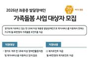 (케이엠뉴스) 경기도가 2026년 최중증 발달장애인 가족돌봄 사업 대상자 145가구를 12월 2일까지 모집한다. 최중증 발달장애인이란 도전적 행동이 심하고 일상생활에 제약을 지닌 통합돌봄이 필요한 발달장애인이다. 경기도는 돌봄이 필요한 모든 도민들을 대상으로 누구나, 언제나, 어디나 빈틈없는 돌봄을 제공하는 360도 돌봄사업을 하고 있다. 최중증 발달장애인 가족돌봄 사업은 이 가운데 ‘어디나 돌봄’ 사업의 하나로 진행한다. 2024년 4월 처음 가족돌봄 사업을 시행한 이래 매달 210가구에 월 40만 원씩 돌봄포인트를 제공해 생필품 구입부터 여가활동 지원까지 다양한 부분에서 사용하여 장애인 당사자와 가족의 생활안정에 기여하고 있다. 2026년 최중증 발달장애인 가족돌봄 사업의 지원 대상은 경기도에서 거주하는 복지관, 직업재활서비스 등 복지서비스 미이용으로 돌봄사각지대에 놓인 만 18세 이상 발달장애인이다. 선정 시 월 40만 원 가족돌봄포인트를 1년간 지원하고 지속적인 모니터링으로 복지서비스와 대상자를 연계하는 서비스를 제공한다. 2026년 모집인원은 145명으로 전년과 다르게 모집인원을 시군별 배