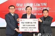 (케이엠뉴스) 지난 18일, ㈜대우건설, ㈜영신디엔씨는 성금 1,000만원을 하남시에 기탁했다. 이날 기탁식에는 이현재 하남시장을 비롯해 ㈜대우건설 안병관 본부장, 박인철 팀장, 정제형 팀장, ㈜영신디엔씨 강일형 회장, 김성욱 본부장, 오선희 부장이 참석했다. 이번 성금은 ㈜대우건설‘으쓱(ESG)투게더 기부챌린지’를 통해 마련된 것으로, 대우건설 임직원 및 최우수협력사 참여자들이 걸음 수를 모아 목표를 달성하면 기부가 이루어지는 사회공헌 활동이다. 이번 기부챌린지에는 최우수 협력사인 ㈜영신디엔씨도 함께 참여하여, 기부 목표 달성함에 따라 ㈜대우건설과 ㈜영신디엔씨 각 500만원씩 총 1,000만원을 기부했다. ㈜대우건설과 ㈜영신디엔씨는 “겨울철 어려움을 겪고 있는 저소득 가구에게 조금이나마 도움이 되기를 바란다.”고 말했다. 이현재 하남시장은“어려운 시기에 따뜻한 마음을 나눠주시는 ㈜대우건설, ㈜영신디엔씨에 깊이 감사드리며 기탁해 주신 성금은 따뜻한 겨울이 될 수 있도록 도움이 필요한 저소득 가구에게 소중히 전달하겠다”고 전했다.