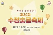 (케이엠뉴스) ‘제20회 수정숯골축제’가 오는 11월 8일 오전 10시~오후 3시 태평공원(수정구 수정로 7)에서 열린다. 성남시 수정구가 후원하고 수정숯골축제 추진위원회가 주최·주관해 열리는 이번 행사는 ‘활기차고 웃음 가득한 수정구’를 주제로 진행된다. 이날 태평공원 다목적 잔디마당에서 성남시립국악단의 식전공연을 시작으로, 시흥동의 난타 공연, 수진1동의 라인댄스 등 8개 동별 대표 공연과 제기차기, 단체투호 등의 민속놀이 경연이 펼쳐진다. 초청 가수의 축하공연도 열린다. 출연진은 ‘바람 바람 바람’ 등의 히트곡을 가진 김범룡, 쌍권총 춤으로 유명한 ‘오직 하나뿐인 그대’의 심신, 미스트롯2에 출연해 화제를 모은 주미 등이다. 올해 성남 갓텔런트 예술단으로 선발된 아인스바움(윈드 앙상블), 김수아(보컬), 윤여찬·임민영(라틴댄스) 팀도 출연해 행사 분위기를 달군다. 행사장 곳곳에는 배틀 로봇, 드론 축구 등의 4차산업 체험존, 페이스페인팅, 캐리커처, 자원순환 활동 등의 체험 부스, 먹거리 부스 등 다양한 즐길 거리가 마련된다. 이 외에도 텔레비전, 냉장고