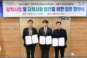 (케이엠뉴스) 수원특례시 영통구는 지난 18일, 한국지역난방공사 수원지사, 구 주민자치협의회와 상호 협력을 바탕으로 지역 미래인재 육성을 위한 장학사업 협약을 체결했다. 이번 협약은 지역 내 학업 의지가 높으며 경제적 지원이 필요한 학생들을 지원하고, 주민과 기관이 함께 성장하는 지역 공동체의 기반을 마련하기 위해 추진됐다. 한편 한국지역난방공사는 내년도 장학사업이 보다 내실 있게 추진될 수 있도록 협약 체결과 함께 장학금 500만 원을 기탁했다. 해당 장학금은 사회복지공동모금회를 통해 관내 학생 가운데 도움이 필요한 대상자를 절차에 따라 선정한 뒤 전달될 예정이다. 한국지역난방공사 김진만 수원지사장은 “지역과 상생하는 공기업으로서 사회적 책임을 꾸준히 실천하고자 한다”며 “이번 장학금이 학생들의 학업과 미래 설계에 작은 힘이 되기를 바란다”고 말했다. 또한 장대현 구 주민자치협의회 회장은 “주민이 중심이 되어 지역 인재를 응원하고 지역 빌전에 기여할 수 있어 뜻깊다”며 “앞으로도 책임감을 가지고 장학사업 및 다양한 협력 사업을 성실히 수행하겠다”고 전했다. 장수석 영통구청장은 “이번