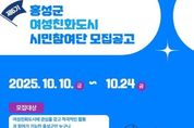 (케이엠뉴스) 홍성군이 ‘여성친화도시’ 조성을 위한 시민참여단 모집에 나섰다. 이번 모집은 남녀가 동등하게 지역 정책에 참여하여 혜택이 고루 돌아가며, 여성의 역량 강화와 돌봄·안전이 보장되는 홍성을 만들기 위한 노력의 일환으로, 시민참여단은 군민들의 다양한 의견을 정책에 반영하고, 양성평등 실현을 위한 비전을 함께 실천하는 역할을 맡게 된다. 모집 기간은 오는 24일까지이며, 홍성군에 거주하는 군민 중 양성평등과 여성친화도시에 관심 있는 사람이라면 누구나 지원할 수 있다. 모집 인원은 20명 내외로, 공개 모집을 통해 선정된다. 홍성군은 이번 시민참여단 모집을 통해 여성친화도시로서의 비전을 구체화하고, 군민 참여를 기반으로 한 실질적인 변화와 발전을 도모할 계획이다. 군 관계자는 “여성친화도시 만들기는 단순한 정책이 아니라, 군민 모두가 함께 실천하는 과정”이라며 “많은 관심과 참여를 부탁드린다”고 말했다. 한편 선정된 제6기 시민참여단은 오는 11월부터 2027년 10월까지 여성친화도시 조성과 관련한 아이디어 제안, 성별 불균형 요소 및 도시 기반시설·공공시설물에 대한 모니터링, 사