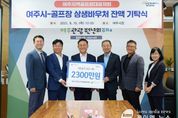 (케이엠뉴스) 여주시는 지난 18일, 여주시청 시장실에서 관내 골프장 대표들이 함께 참여한 성금 기탁식을 개최했다고 밝혔다. 이번 성금은 지난해 8월부터 여주시와 지역 골프장들이 함께 추진한 골프장 바우처 사업에서 발생한 잔액을 모아 마련한 것으로, 총 2,300여만 원을 사회복지공동모금회에 기탁했다. 지난해 골프장 20개소가 기금을 마련하여 조성한 2억 5,500만원 규모의 바우처 중 약 91%인 2억 3,200만원의 바우처가 관내 곳곳에 사용됐고, 그 남은 잔액을 사회복지공동모금회에 기탁했다. 여주지역골프장대표자회 대표인 블루헤런 골프클럽 권오삼 대표는 “바우처 사업을 통해 여주시민과 함께할 수 있었던 것만으로도 뜻깊었는데, 그 잔액이 다시 도움이 필요한 이웃을 위해 쓰이게 되어 기쁘다”며 “앞으로도 지역사회에 보탬이 되는 사회공헌 활동을 지속하겠다”라고 말했다. 시 관계자는 “최근 어려운 영업 환경에도 골프장들이 지역사회와 함께 따뜻한 나눔을 실천해주셔서 감사하다”라며 “2차 여주시-골프장 바우처도 우리시 지역경제 활성화에 도움이 되길 바라고, 기탁금은 꼭 필요한 곳에 투명하게 전달하여 시민 모두가 체감할
