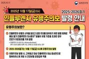 (케이엠뉴스) 강원특별자치도는 지난 10월 17일 질병관리청의 인플루엔자 유행주의보 발령 이후 도내 인플루엔자 의사환자가 지속적으로 증가하고 있어, 도민들에게 예방접종 참여를 적극 당부했다고 밝혔다. 질병관리청 분석에 따르면 전국 인플루엔자 의사환자는 43주 13.6명에서 46주 66.3명으로 5주 연속 급증한 것으로 나타났다. 특히 7~12세 및 13~18세 학령기 어린이·청소년 연령층에서 증가 폭이 가장 컸으며, 1~6세 미취학 아동도 증가세가 두드러져 소아·청소년을 중심으로 확산 양상이 뚜렷하게 나타났다. 강원특별자치도 내 인플루엔자 의사환자 역시 전국 상황과 동일하게 급격한 증가세를 보이고 있으며, 특히 7~12세 연령군은 전국 평균을 크게 상회해 해당 연령층에 대한 예방접종이 시급히 필요한 상황이다. 도는 현재 생후 6개월~13세 어린이, 임신부, 65세 이상 어르신을 대상으로 2025~2026절기 인플루엔자 국가예방접종을 지원하고 있으며, 지역 접종률은 목표치(어르신 81.5% 등)보다 낮은 접종률을 보이고 있어 도민의 안전하고 건강한 겨울나기를 위해 적극적인 예방접종 참여가 필요한 실정이다. &nb