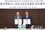 (케이엠뉴스) 용인특례시는 8일 시청 4층 접견실에서 대한산업안전협회와 ‘중대재해 예방과 안전문화 확산을 위한 업무협약’을 맺었다. 이날 협약식에는 이상일 시장과 임무송 대한산업안전협회 회장, 주도종 기술이사, 강원석 경기지역본부장이 참석했다. 시와 협회는 ▲중대재해 예방을 위한 자문 ▲용인시 종사자 대상 안전교육과 재해예방 역량 강화 지원 ▲시민 안전을 위한 안전점검 지원 ▲건설안전과 시설 안전에 관한 자문 ▲안전문화 확산을 위한 공동 캠페인 등을 추진하기로 했다. 시는 협약을 계기로 고도화된 안전관리 체계를 구축하고, 공무원과 현장 종사자들의 안전 역량을 강화해 시민이 체감하는 안전 수준을 한층 더 높일 계획이다. 1964년 출범한 대한산업안전협회는 오랜 경험과 전문성을 기반으로 안전진단, 인증, 교육 등 안전관리 분야에서 핵심적인 역할을 하는 종합컨설팅기관이다. 임무송 회장은 “삼성과 SK를 중심으로 용인특례시가 대한민국의 반도체 중심 도시로 도약하는 데 이상일 시장님이 큰 역할을 하신 것으로 안다”며 “용인이 다른 지역의 모범이 되는 안전의 새로운 모델(표준)로 자리 잡을 수 있