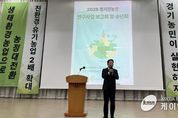 (케이엠뉴스) 경기도의회 농정해양위원회 방성환 위원장(국민의힘, 성남5)은 10일 YBM연수원에서 열린 ‘경기도친환경경농업인연합회 연구사업 보고회 및 송년회’에 참석해 축사를 전하며 친환경농업 발전을 위해 노력해온 농업인들에게 깊은 감사의 뜻을 전했다. 이번 보고회는 연합회가 2025년도 추진한 연구사업 성과를 공유하고 도내 친환경농업의 향후 방향을 논의하기 위해 마련된 자리로, 농업인과 연구진, 기관 관계자 등 300여 명이 참석했다. 방 위원장은 축사에서 “친환경농업은 탄소 저감과 토양·수질 개선 등 환경보전 효과가 크며, 지속가능한 농업의 미래를 여는 핵심 정책”이라고 강조했다. 이어 “친환경농산물은 도민의 건강뿐 아니라 학생 급식에 안전하고 품질 좋은 농산물을 공급하는 데 매우 중요한 기반”이라며, “경기도의회 농정해양위원회는 친환경농업이 더욱 확대되고 농가경영이 안정될 수 있도록 정책·예산 지원을 지속하겠다”라고 밝혔다. 또한 방 위원장은 이번 보고회가 한 해 동안의 성과를 공유하고 친환경농업의 발전 전략을 함께 모색하는 뜻깊은 자리라고 평가하며, “친환경농업은 경기도 농정의 중요한 축이며