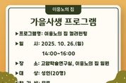 (케이엠뉴스) 홍성군 고암이응노생가기념관은 오는 26일 오후 2시부터 4시까지, ‘가을사생 프로그램’을 운영한다고 밝혔다. 이번 프로그램은 가을 정취가 무르익은 이응노의 집 주변 풍경을 배경으로, 참가자들이 직접 자신만의 시선으로 자연의 색감을 담아내는 야외 사생 체험으로 구성됐다. 고암 이응노 화백의 예술 정신을 되새기며, 자연 속에서 창의성과 감성을 발휘할 수 있는 시간이 될 것으로 기대된다. 이번 행사는 고암학술연구실 교육실과 이응노의 집 일원에서 진행되며, 행사 당일 참가자들은 고암이응노생가기념관의 교육실에서 간단한 사전 오리엔테이션을 진행한 뒤, 이응노의 집 주변 일대에서 자유롭게 작품을 완성하는 시간을 갖게 된다. 참여 신청은 홍성군 통합예약시스템을 통해 가능하며, 프로그램에 대한 자세한 문의는 고암이응노생가기념관으로 하면 된다. 윤상구 문화유산과장은 “가을사생 프로그램은 자연의 변화 속에서 예술적 영감을 얻고, 고암 선생의 예술세계를 몸소 체험할 수 있는 의미 있는 시간”이라며, “가족 단위 참가자나 미술에 관심 있는 누구나 함께 참여해 예술의 계절을 즐기시길 바란다”고 전했다. 한편,