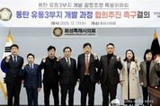 (케이엠뉴스) 화성특례시의회 '동탄 유통3부지 개발 갈등조정 특별위원회'는 17일 의회 대회의실에서 동탄 유통3부지 개발과정 협의추진 촉구결의를 진행했다. 이번 촉구결의에서는 특별위원회가 공식적으로 구성되어 활동 중인 상황에서, 유통3부지 개발과 직결된 주요 안건이 사전 설명이나 협의 없이 도시계획심의위원회에 제출된 데 대한 문제의식을 공유하고, 향후 합리적인 협의 절차의 필요성을 분명히 하기 위해 마련됐다. 이날 촉구결의에서 특별위원회는 ▲도시계획심의위원회 안건 제출 경위에 대한 집행부의 공식적이고 신속한 설명 ▲유통3부지와 관련된 모든 주요 행정 절차에 대해 특별위원회와의 사전 보고 및 협의 이행 ▲의회를 단순한 추인 기구로 인식하는 행정 관행을 개선하고 협치 원칙을 존중할 것을 촉구했다. 특히, 특별위원회가 갈등 해소를 위한 공론의 장으로서 실질적인 기능을 하기 위해, 향후 사업 추진 과정 전반에서 의회와의 긴밀한 소통과 충분한 협의가 반드시 전제되어야 한다는 점을 강조했다. 공동위원장단(김상수‧김영수‧전성균)은 한목소리로 “동탄 유통3부지 개발은 지역 주민의 생활환경과 직결되는 사안인 만큼,
