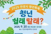 (케이엠뉴스) 안성시는 청년의 날을 기념해 ‘2025 안성시 청년축제(부제: 안성청년 쉴래말래?)’를 9월 20일 15:30부터 21:00까지 한경국립대학교 운동장에서 개최한다. 축제는 메인무대 프로그램과 4개 체험 ZONE으로 구성돼 청년이 쉬고 즐기며 서로 연결되는 청년 참여형 축제로 꾸며진다. 메인무대는 ▲식전공연 ▲개막식 ▲안성청년가왕 본선 ▲토크콘서트 ▲청년독립영화 상영 및 폐회 순으로 진행된다. 특히 올해 하이라이트인 ‘안성청년가왕’은 8월 중 2주간 진행한 공개모집에 20팀이 지원, 예선 심사를 거쳐 본선에 오를 6팀(명)이 확정됐다. 본선은 1인(팀)당 자유곡 1곡·5분 무대로 치러지며, 심사위원 평가와 관객투표 합산으로 최종 수상자를 가린다. 토크콘서트는 개그맨 김영희가 ‘소통왕 말자’ 콘셉트로 진행하며, ‘청년 고민 타파’를 주제로 유쾌한 소통의 무대를 선보인다. 폐막 프로그램으로는 청년독립영화 ‘너를 건너는 시간’ 상영이 마련되어 축제의 여운을 이어갈 예정이다. 현장은 대학생·체험·플리마켓·푸드 등 4개 ZONE으로 운영된다. 대학생 ZONE에는 한경국립대학교, 한국폴리텍대 반도체융합캠퍼스,