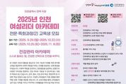 (케이엠뉴스) 인천광역시는 역량 있는 여성 인재를 발굴하고 육성하기 위해 인하대학교 평생교육원과 함께 ‘2025 인천 여성리더 아카데미’ 두 번째 전문・특화과정인 ‘건강관리 아카데미’ 교육생을 모집한다고 밝혔다. 이번 과정은 건강과 웰빙을 중심으로 지속 가능한 미래를 준비할 여성리더 양성에 중점을 두고 있으며, 전문가 특강, 건강관리 강의, 현장 견학 등 다양한 학습과 실습을 통해 교육생들이 직접 체험하며 역량을 키울 수 있도록 구성됐다. 특히 ‘인천시와 함께하는 생생 시정 현장견학’ 프로그램을 통해 교육생들이 인천시 정책과 시정 현장을 직접 경험할 수 있는 기회도 제공한다. 모집 대상은 ▲인천시에 거주하는 여성 ▲인천시 관내 직장 여성 ▲인천 소재 학교의 재학생 및 졸업생으로, 총 60명을 선발한다. 접수는 오는 10월 22일까지 진행되며, 교육은 10월 25일부터 11월 8일까지 수요일과 토요일 인하대학교 평생교육원에서 열린다. 앞서, 지난 5월과 9월에는 ‘2025 인천 여성리더 아카데미’ 기본과정과 문화·예술 분야 전문특화과정(Ⅰ)을 통해 각각 60명과 80명의 수료생을 배출한