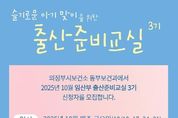 (케이엠뉴스) 의정부시 보건소 동부보건과는 관내 20~28주 임산부를 대상으로 ‘임산부 출산준비교실’ 프로그램 3기 대상자 20명을 9월 17일부터 선착순 모집한다. 2025년 임산부 출산준비교실은 총 3기로 진행되며, 지난 6월과 8월에 2기수를 성공적으로 마무리하고 마지막 3기수만 남았다. 1기와 2기의 만족도는 5점 만점에 각각 4.9점, 4.6점으로 이론수업과 태교활동의 다양한 프로그램으로 진행돼 산모들의 큰 호응을 얻었다. 이론수업은 국제 모유수유 전문가를 초빙해 ▲출산과정의 이해 ▲신생아 관리 및 간호법 ▲모유수유 과정 및 방법에 대한 교육으로 진행하며, 공동 육아에 대한 이해를 높이고자 배우자 동반 참여가 가능하다. 태교활동은 산모의 정서적 안정감과 태어날 아기에 대한 기대감을 높이는 ▲태명 턱받이 아기용품 만들기 ▲아로마테라피를 활용한 나만의 디퓨저 만들기로 진행될 예정이다. 임산부 출산준비교실은 동부보건과 다목적실에서 10월 10일부터 31일까지 매주 금요일 2~4시, 총 4회로 진행된다.