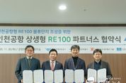 (케이엠뉴스) 인천국제공항공사는 20일 오전 공항청사 회의실에서 물류단지 입주기업 3개社와 함께 ‘상생형 RE100 파트너스 업무협약(MOU)’을 체결했다고 밝혔다. 이날 협약식에는 인천국제공항공사 배영민 인프라본부장을 비롯해 서울항공화물 박근후 사장, 자이언트네트워크그룹 원제철 회장, 인천국제물류센터 안락준 상무 등 관계자들이 참석했다. ‘상생형 RE100 파트너스’는 인천공항의 물류단지 내 입주기업들이 직접 친환경 재생에너지 전력을 생산하고, 이를 공항운영 전력으로 공급하는 ‘직접 PPA(전력구매계약)’ 사업이다. 구체적으로 물류단지 입주기업들은 유휴부지(지붕, 주차장 등) 내 태양광 설비를 설치하여 전력을 생산하고, 공사는 생산한 전력의 전량을 구매하여 RE100 달성을 위한 비용을 절감한다. 이를 통해 공항과 입주기업이 함께 참여하는 ‘상생형 RE100 모델’을 구축함으로써, 탄소중립 실현과 더불어 재생에너지 산업 생태계 활성화를 함께 달성할 것으로 기대된다. 또한, 공사는 입주기업이 원활히 친환경 사업을 수행할 수 있도록 전력공급 기반시설 제공, 기술자문, 행정지원 등 종합적인