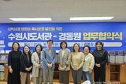 (케이엠뉴스) 수원시도서관과 사회복지법인 경동원은 14일 경동원에서 ‘교류 협력을 위한 업무협약’을 체결했다. 공공도서관과 지역 복지기관이 함께 어린이의 독서 접근성을 높이고, 독서 친화적 성장환경을 조성하기 위한 협약이다. 수원시도서관은 경동원 어린이를 위한 독서 활동 프로그램과 도서 기부, 독서 서비스, 공연 등 다양한 독서문화 진흥 사업을 추진할 계획이다. 두 기관은 지역사회 어린이 보육 기관과 연계해 창의력과 표현력을 키울 수 있는 독서교육 프로그램을 운영하고, 교육·문화 협력을 위한 지속 가능한 교류 체계를 이어가기로 했다. ‘아이들을 위한 스토리텔링과 책놀이’ 프로그램을 10월 14일부터 11월 4일까지 매주 화요일 경동원에서 진행한다. 스토리텔링과 책놀이로 어린이의 창의력 발달을 돕고, 교사의 소통 능력을 높이는 내용으로 구성됐다. 이날 협약식에는 김병수 도서관사업소장, 신승주 경동원장, 이명옥 선경도서관장 등이 참석했다. 김병수 도서관사업소장은 “이번 협약은 어린이들의 독서 환경 격차를 줄이고, 누구나 동등하게 독서문화의 혜택을 누리도록 하기 위한 공동의 약속”이라며 “수