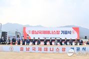 (케이엠뉴스) 충청권 최초 국제 규격 테니스 경기장으로, 2027년 8월 하계세계대학경기대회 테니스 경기를 치를 ‘충남국제테니스장’이 첫 삽을 뜨고 본격 공사에 들어갔다. 도는 24일 내포신도시(홍성군 홍북읍 신경리)에서 김태흠 지사와 체육계 인사 등 800여 명이 참석한 가운데 충남국제테니스장 기공식을 개최했다. 충남국제테니스장은 5만 556㎡의 부지에 시설 면적은 1만 4406㎡이다. 3000석 규모 센터 코트 1면과 1000석 규모 쇼트 코트 1면, 500석 규모 실내 코트 4면 경기 코트 8면, 연습 코트 2면 등 총 16면의 테니스 코트를 갖춘다. 이는 국제 테니스 경기를 치를 수 있는 규모로, 완공을 하면 충남국제테니스장은 ‘충청권 최초 국제 규격 테니스 경기장’ 타이틀을 갖게 된다. 투입 사업비는 국도비 817억 원이다. 도는 충남국제테니스장 건립을 위해 2023년 7월 타당성 조사 및 기본계획 수립 용역에 들어가 2024년 1월 기본계획을 마련했다. 같은 해 9월에는 입찰 공고를 내고, 지난 2월 계룡컨소시엄을 실시설계 적격자로 선정했다. 충남국