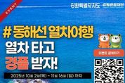 (케이엠뉴스) 강원특별자치도와 강원관광재단은 오는 10월 2일부터 11월 16일까지‘KTX 동해선 철도여행 인증 이벤트’를 운영한다고 밝혔다. 추석 연휴와 가을철 성수기에 맞춰 동해선 철도여행 활성화를 위해 마련된 이번 이벤트는 강릉, 동해, 삼척, 부산 부전역 등 동해선 이용객을 대상으로 하며, 기차역과 열차 내 풍경 등의 사진과 동해선 열차 승차권·영수증을 인증하면 참여할 수 있다. 동해선 열차 이용객 누구나 전용 누리집(홈페이지)을 통해 이벤트 참여가 가능하며 추첨을 통해 백화점 상품권, 편의점 및 카페 모바일 상품권 등 다양한 경품이 제공된다. 최성현 강원관광재단 대표이사는 “이번 동해선 열차여행 인증 이벤트를 통해 동해선 철도여행의 매력을 확산시켜, 철도 정거장을 연계한 동해안권 관광을 더욱 활성화 시키겠다”고 말하며“다가오는 추석 명절, 동해선 철도를 이용하는 모든 분들의 여정이 더욱 편안하고 안전하시길 바란다”고 전했다. 자세한 이벤트 참여 방법은 동해선 철도여행 인증 이벤트 전용 누리집(홈페이지) 에서 확인할 수 있다. 한편, 올해 1월 개통한 동해선은 강릉을 비롯해 동해