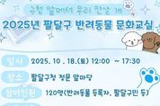 (케이엠뉴스) 수원시 팔달구는 10월 18일 오후 12시부터 17시 30분까지 팔달구청 정문 앞마당에서 ‘2025년 팔달구 반려동물 문화교실’을 개최한다고 밝혔다. 반려동물 문화교실은 성숙한 반려문화 확산과 올바른 반려동물 관리, 양육 방법을 알리기 위해 마련됐으며 반려동물 등록자 및 팔달구민 120명을 대상으로 추진한다. 교육 프로그램은 △인식표 만들기 △산책 그룹 훈련 △반려견 셀프 미용으로 총 3개 프로그램을 추진한다. 12시부터 진행하는 ‘인식표 만들기’는 반려견 유실 방지를 위해 동물등록번호와 견주 연락처를 새긴 맞춤형 인식표를 직접 제작할 수 있고, 14시부터는 ‘산책 그룹 훈련’에서는 산책줄 핸들링과 돌발 상황 시 대처법 등 및 올바른 산책 방법에 대해 배워볼 수 있다. 15시 30분에는 초보자도 쉽게 실천할 수 있는 ‘반려견 셀프 미용 수업’이 준비되어 있다. 팔달구 관계자는 “2025년 반려동물 문화교실 개최를 통해 구민들이 반려동물을 책임감 있게 관리하고, 올바른 반려 문화가 조성되길 바란다“라고 말했다. 한편, 팔달구는 구 홈페이지, 안내문자 및 QR코드를 통해 수강
