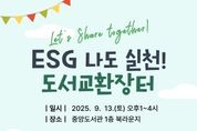 (케이엠뉴스) 인천광역시교육청중앙도서관은 환경친화적 독서 문화 조성과 지역사회 나눔 실천을 위해 9월 13일 오후 1시부터 4시까지 중앙도서관 1층 북라운지에서 ‘ESG 실천 도서교환장터’를 개최한다. 시민들은 다 읽은 책을 가져와 다른 책과 교환할 수 있으며, 최근 5년 이내 발간된 개인 소장 도서만 1:1로 교환할 수 있다. 1인당 최대 3권까지 가능하다. 단, 파손 도서, 수험서, 교과서, 전문서적, 전집류 등은 교환 대상에서 제외된다. 같은 날 중앙도서관에서는 주말을 맞아 다양한 부대 프로그램도 마련된다. ‘도서관에서 만나는 우리 동네 국립극장’ 공연 콘텐츠와 ‘내 손에 쏙! 세계의 랜드마크’ 다문화 체험활동이 함께 진행돼, 가족 단위 방문객에게 풍성한 즐길 거리도 제공한다.