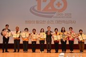 (케이엠뉴스) 김태흠 충남도지사가 120년을 이어온 대한적십자사의 숭고한 봉사 정신을 기리며, 앞으로도 든든한 동반자가 되겠다는 뜻을 밝혔다. 김 지사는 12일 도청 문예회관에서 열린 대한적십자사 창립 120주년 충남지사 연차대회에 참석해 “지난 120년간 적십자가 쌓아올린 나눔과 봉사의 전통 위에 사회가 건강하게 발전되고 있다”며 “이 모든 것은 여러분들의 노고 덕분에 가능했다”고 격려했다. 이어 “올해도 재해현장에서 보여주신 적십자 가족들의 헌신적인 활약에 도민 모두가 큰 위로와 용기를 얻었다”며 “도민들이 힘들 때 가장 먼저 달려가 봉사하고, 희생·헌신하는 ‘노란조끼 영웅들’의 활약을 우리는 결코 잊지 않을 것”이라고 강조했다. 이는 지난 1월 서해호 전복사고와 7월 집중호우 때 2000여 명이 넘는 적십자 가족이 도민들의 힘이 되어준 것을 언급한 것으로, 이때 모금한 성금은 30억원에 달한다. 서해호 전복사고 당시에는 179명의 회원들이 밤낮없이 애쓴 덕분에 1000여 명의 실종자 가족과 수색인력에게 식사와 물자가 제공될 수 있었다. 7월 집중호우 때는 적십자 가족들이 파손된 주