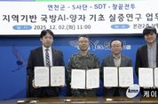 (케이엠뉴스) 연천군은 지난 2일 군청 상황실에서 육군 제5보병사단, SDT(주), 사단법인 창끝전투와 함께 AI 대전환 시대에 대응하고 지역의 새로운 성장 동력을 확보하기 위한 ‘지역기반 국방 AI·양자 기초 실증연구’ 업무협약을 체결했다고 밝혔다. 이번 협약은 군(5사단)–산(SDT)–학(창끝전투)–관(연천군)이 참여하는 협력체계를 구축해 접경지역인 연천의 지리적 특성과 5사단의 실전형 작전 수요, 국내 최고 수준의 양자 전문기업 SDT의 기술, 창끝전투의 전략 연구 역량을 결합한 지역 맞춤형 첨단기술(AI·양자) 실증연구 체계를 마련하기 위한 것이다. 연천군은 이를 기반으로 AI 실증 거점 도시로서의 위상을 공고히 한다는 구상이다. 또한 이번 협약은 각 기관이 보유한 전문성을 바탕으로 지속가능한 접경지역 AI·양자 생태계 조성에 기여한다는 점에서 의미가 있다. 이는 정부가 추진 중인 국방 AX 대전환, 국방 디지털 전환 정책에도 부합하며, 연천이 접경지역의 특성을 살린 첨단기술 테스트베드로서 경쟁력을 갖추고, 국방·과학기술 분야의 선도적 지역 이미지를 높이는 데 기여할 것으로 기대된다. 본 협약에 따라 각