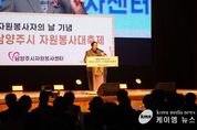 (케이엠뉴스) 남양주시의회는 6일 남양주체육문화센터 실내체육관에서 열린 ‘2025년 남양주시 자원봉사 대축제’에 참석해 올 한 해 헌신과 봉사에 힘쓴 자원봉사자들을 격려했다. (사)남양주시자원봉사센터가 주최‧주관한 이날 행사는 12월 5일 자원봉사자의 날을 기념해 지역사회를 위해 헌신한 자원봉사자들의 노고를 기리고, 한 해 동안의 자원봉사 활동을 끝맺음하는 축제의 장으로 마련됐으며, 조성대 의장과 시의원 및 주광덕 남양주시장, 관내 자원봉사자 등 1,300여명이 참석했다. 행사는 줌바댄스 ‘아이린줌바크루’ 식전공연을 시작으로 1부는 △자원봉사이그나이트 발표 △축하공연(캘리그래피 퍼포먼스‘캘리깡패’및 가수 연미연‧이효진), 2부는 △내빈소개 △수상자 활동 영상 상영 △우수자원봉사자 시상 및 축사 순서로 진행됐으며, 부대행사로 자원봉사자 응원 포토존, 아트봉사단, 손마사지 봉사단, 느티나무 봉사단 등 다양한 부스가 운영됐다. 조성대 의장은 축사를 통해 “한 해 동안 지역 곳곳에서 묵묵히 헌신해 주신 자원봉사자 여러분께 깊은 감사와 존경의 인사를 드리며, 우리시 인구 28%에 해당하는 20만명의 자원봉사자들께서 도움