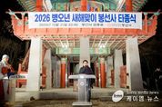 (케이엠뉴스) 남양주시는 1월 1일 새벽, 대한불교조계종 제25교구 본사 봉선사(주지 호산 스님)에서 열린 ‘2026년 병오년(丙午年) 새해맞이 타종식’ 현장을 찾아 시민들과 함께 희망찬 새해의 시작을 알렸다. 이번 행사는 한 해를 마무리하고 새해의 희망과 안녕을 기원하는 자리로, 시민 화합과 연대를 다지는 의미를 담아 마련됐다. 행사에는 주광덕 시장을 비롯해 봉선사 주지 호산 스님, 조성대 시의장, 지역 국회의원, 도의원, 시의원, 시민과 불자 등 500여 명이 참석했다. 행사는 1부 송년법회, 2부 타종식으로 나눠 진행됐다. 타종식에서는 개회를 시작으로 △새해덕담 및 송년인사 △발원문 낭독 △보물 범종 소개가 이어지며 전통문화유산의 가치와 의미를 되새겼다. 자정이 가까워지자 운악산 자락에 시민들의 카운트다운 소리가 울려 퍼졌고, 0시 정각을 기해 새해의 문을 여는 타종이 시작됐다. 주 시장은 직접 종채를 잡고 타종에 참여하며, 시의 발전과 74만 시민의 안녕을 기원했다. 범종 소리가 울릴 때마다 시민들은 건강과 행복을 빌었고, 현장은 박수와 환호로 가득 찼다. 주 시장은
