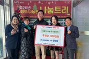 (케이엠뉴스) 남양주시는 9일 금곡동 소재 ㈜서울빙과총판이 진건읍 위기가구를 위한 후원금 300만 원을 전달했다고 밝혔다. 이번 후원은 진건읍 지역사회보장협의체가 연말연시를 맞아 운영 중인‘진건읍, 사랑의 나눔존 나눔트리’나눔 릴레이의 일환으로 추진됐다. 전달된 후원금은 경기사회복지공동모금회를 통해 진건읍 지역사회보장협의체로 지정 기탁되며, 2026년부터 위기가구 신속 응대 사업 ‘바로지원 꾸러미’에 활용된다. 이 사업은 위기 상황에 놓인 가구에 식료품 등 꾸러미를 신속하게 전달해 일시적인 위기를 완화하고 생활 안정을 도모하는 것을 목표로 한다. 엄관용 대표는 “지역사회와 함께 성장해 온 기업으로서 어려운 이웃에게 실질적인 도움을 되고자 후원을 했다”며 “이번 후원이 위기가구를 위한 신규 사업에 활용된다고 생각하니 더욱 뜻깊다”고 전했다. 김학철 진건퇴계원행정복지센터장은 “민간의 따뜻한 나눔이 위기가구를 신속히 지원하는 중요한 밑거름이 된다”며 “앞으로도 민관협력을 바탕으로 촘촘한 복지 안전망을 구축해 나가겠다”고 말했다. 박현정 진건읍 지역사회보장협의체 위원장은 “이웃을 먼저 생각하는