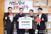 (케이엠뉴스) 양주시가 10일 ㈜케이알씨(대표 오전식)로부터 이웃돕기 성금 1,000만 원을 기탁받았다. 이번 기탁식에는 오전식 대표가 참석해 시 관계자와 환담을 나누며 따뜻한 나눔의 뜻을 전했다. 기탁된 성금은 경기사회복지공동모금회를 통해 양주시 취약계층 지원에 사용될 예정이다. 오전식 대표는 “기업이 지역에서 성장한 만큼, 도움이 필요한 이웃들에게 조금이라도 힘이 되고 싶어 매년 나눔을 이어오고 있다”며 “앞으로도 지역사회와 함께하는 기업으로서 책임을 다하겠다”고 말했다. 시 관계자는 “꾸준한 기부로 이웃사랑을 실천해 주신 ㈜케이알씨에 감사드린다”며 “전달된 성금이 꼭 필요한 분들께 잘 닿을 수 있도록 시에서도 정성을 다하겠다”고 말했다. 한편 ㈜케이알씨는 매년 기부와 봉사활동을 지속해 오고 있으며, 지난 5일 양주시 ‘시민포상의 날’에서 나눔문화 확산 유공을 인정받아 포상을 받는 등 지역사회 상생에 앞장서고 있다.