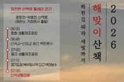 (케이엠뉴스) 의정부시는 2026년 1월 1일 병오년 새해를 맞아 지역 주민들이 함께 걸으며 희망찬 2026년을 시작할 수 있도록 ‘해맞이 산책, 하천길 따라 새빛정원까지’ 행사를 개최한다. 이번 행사는 ▲호원 생활체조광장에서 출발해 ▲신의교~신곡교 중간지점 벽천분수 ▲동오역 생활체조광장 ▲경기도청 북부청사역 인근 벽천분수를 거쳐 ▲신곡새빛정원까지 이어지는 릴레이 산책 코스로 진행된다. 참가자들은 새해 첫날 아침 각 지점을 차례로 걸어 최종 도착지인 신곡새빛정원에서 함께 해돋이를 감상할 예정이다. 새해를 축하하는 역동적인 북 공연과 신년 운세 뽑기 등의 시간을 가지며 의미있는 2026년을 시작할 예정이다. 특히 2026년을 여는 첫 행사인 만큼, 시민이 주인공이 되는 축제를 만들기 위해 새해를 맞아 소중한 사람이나 자신에게 보내는 편지를 사전 접수해 신곡새빛정원에서 함께 공유할 예정이다. 김동근 시장은 “새해 첫날 이웃과 함께 걸으며 소통하고, 희망찬 2026년을 시작하는 뜻깊은 자리가 될 것”이라며 “행사를 준비 중인 통장협의회에 감사드리며, 의정부 시민들의 많은 관심과 참여를 부탁드린다”고 말했