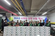 (케이엠뉴스) 파주시 파주읍 새마을부녀회와 새마을지도자협의회는 지난 11일, 겨울을 앞두고 지역 내 어려운 이웃을 위한 ‘사랑의 김장김치 나눔 행사’를 실천했다고 밝혔다. 이날 행사는 새마을부녀회원들과 지도자협의회원들이 이틀에 걸쳐 협력해 진행됐다. 전날인 10일에는 배추 절이기와 재료 손질 등 사전 준비를 진행했으며, 11일에는 본격적으로 속 넣기와 포장 작업을 이어가며 정성껏 김치를 담갔다. 완성된 김장김치 119상자는 새마을부녀회원이 관내 저소득 독거 어르신 가정에 직접 방문하며 전달해 따뜻한 정성을 전했다. 이선희 파주읍 새마을부녀회장은 “회원들과 함께 마음을 모아 담근 김치가 이웃들에게 힘이 되길 바란다”라며 “앞으로도 여성의 섬세한 손길로 지역 나눔을 실천하겠다”라고 전했다. 변봉수 파주읍 새마을지도자협의회장은 “지역사회가 함께 나누고 배려할 때 더 따뜻해진다”라며 “작은 정성이지만 이웃들에게 힘이 되길 바란다”라고 말했다. 윤상기 파주읍장은 “매년 이어지는 김장김치 나눔 행사는 지역 공동체의 온정을 느낄 수 있는 소중한 자리”라며 “앞으로도 민관이 협력해 복지 사각지대를 줄