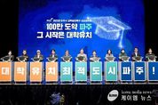 (케이엠뉴스) 파주시는 지난 23일 대교미디어센터에서 ‘파주시 대학유치 결의대회’를 개최했다고 밝혔다. 이번 행사는 대학 유치의 필요성과 당위성을 시민과 공유하고, 파주시의 강력한 유치 의지를 대내외에 공식적으로 알리기 위해 마련됐다. 행사에는 김경일 파주시장을 비롯해 대학 유치 자문위원, 교육발전위원회 위원, 학교장 등 100여 명이 참석했다. 파주시는 접경 지역이라는 지리적 한계를 넘어 새로운 성장 동력을 확보하기 위해 지속적으로 노력해 왔으며, 이번 결의대회를 통해 대학 유치가 파주의 미래를 견인할 핵심 사업임을 강조했다. 이날 행사에서는 대학 유치를 염원하는 학사모를 조형물에 채워 넣는 기념 의식을 통해 지역사회 전체의 염원과 결의를 시각적으로 표현했다. 파주시 관계자는 “조형물이 학사모로 채워지는 모습은 머지않아 파주에 대학이 들어서고 인재가 넘쳐나는 미래를 상징한다”라며, “시민들의 뜨거운 염원을 바탕으로 파주가 명품 교육도시로 도약할 수 있도록 하겠다”라고 말했다.