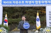 (케이엠뉴스) 이상일 용인특례시장은 6일 처인구 양지면 대대리 ‘자유수호희생자위령탑’에서 열린 제45회 자유수호희생자 합동위령제에 참석해 희생자들을 추모했다. 이날 행사엔 이상일 시장을 비롯한 박창무 한국자유총연맹 용인시지회장 등 지역 내 단체 관계자와 시민 50여 명이 참석했다. 행사는 희생자를 기리기 위한 추도 의식, 추념사·추도사, 조가 연주와 제창, 진혼무, 헌화 순으로 진행됐다. 이상일 시장은 추도사에서 “고대부터 자유는 인간에게 가장 중요한 가치로 자유를 얻지 못하면 우리는 평등해질 수가 없다”며 “선배 세대들이 목숨을 바치면서 자유를 지켜낸 모습만 봐도 자유는 그냥 얻어진 것이 아니다”라고 강조했다. 이 시장은 “우리가 매년 위령제를 지내는 것은 1990년 9월 21일 희생당하신 분들의 고귀한 넋을 우리가 면면히 잘 이어받아 선배 세대가 소중하게 지킨 이 나라를 더욱더 발전시켜 후배 세대들에게 물려주기 위함이라고 생각한다”며 “호국영령의 넋이 하늘나라에서도 늘 평안을 누리시길 기원드린다”고 했다. 자유수호희생자위령탑은 1950년 9월 21일 용인·화성·수원 등지에서 끌려와 양지면 대대리