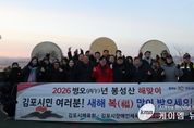 (케이엠뉴스) 김포시와 김포시체육회·김포시장애인체육회가 지난 1일 하성면 봉성산에서 ‘2026 봉성산 해맞이 행사’를 개최하고, 시민들과 함께 병오년 붉은 말의 해의 시작을 알렸다. 이번 행사는 새해 첫 일출을 맞이하며 시민 화합과 지역 공동체의 안녕을 기원하기 위해 마련됐다. 이른 새벽부터 봉성산을 찾은 시민들은 서로 새해 인사를 나누며 함께 산길을 오르고, 정상에서 떠오르는 해를 바라보며 한 해의 평안과 희망을 기원했다. 당초 예상보다 많은 약 1,000명의 시민이 참여해, 추운 날씨에도 불구하고 봉성산 일대는 새해를 맞이하는 시민들의 발걸음으로 활기를 띠었다. 행사는 오전 7시 봉성산 정상에서 시민 1,000여 명이 참여한 가운데 ▲성악 앙상블 ‘벨라보체 6인조’의 밝고 웅장한 새해 축하 공연을 시작으로 ▲타악연희단 ‘누리’의 박진감 넘치는 모듬북 공연이 이어지며 새해의 기운을 힘차게 알렸다. 이어 시민들이 직접 참여해 새해 소망과 행복, 지역 화합을 기원하는 프로그램이 진행되며 의미를 더했다. 이날 김병수 김포시장은 “붉은 말의 해, 김포에 붉은 교통이 들어와서 모든 분들에게 큰 기쁨이 됐으면 좋겠다.