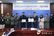 (케이엠뉴스) 화성특례시가 국제 표준의 안전보건경영시스템 ‘ISO 45001’ 인증을 획득했다고 15일 밝혔다. 이날 시청 상황실에서 열린 인증 수여식에서는 경영 대리인인 정구원 화성특례시 제1부시장을 비롯해, 안상현 ISO 45001 선임 심사원 등이 참석한 가운데 인증서 및 현판 수여가 진행됐다. ISO 45001은 국제표준화기구(ISO)에서 제정한 안전보건경영 인증 시스템으로, 산업재해 예방을 위해 사업장의 위험 요인을 제거하고 이를 체계적으로 관리하기 위한 시스템 구축과 요구사항을 충족한 기관에 부여하는 국제 표준 인증이다. 이번 인증은 시의 체계적인 안전보건관리와 산업재해예방 노력이 대외적으로 인정받은 성과로, 안전한 일터 조성에 필수적인 기반이 마련됐다는 평가다. 시는 ▲안전보건관리체계 구축 ▲위험성 평가 ▲내부심사 및 경영검토 ▲법규 준수 여부 등 국제표준 절차에 따라 사업장 안전사고 예방 및 관리 시스템을 강화해 왔다. 특히, 인증을 추진하는 과정에서 실효성 있는 재해예방활동, 근로자 참여 활성화, 중대재해처벌법 등 안전보건 관련 법령의 의무이행 사항을 성실히 수행해 조직