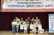 (케이엠뉴스) 용인특례시 기흥도서관은 19일 기흥도서관 시청각실에서 ‘천권DREAM 완독자 인증서 수여식’을 개최했다고 22일 밝혔다. 올해 프로그램엔 총 268명의 어린이가 참여했으며, 그중 5명이 완독 목표인 1000권을 달성했다. 이날 행사에는 1000권을 완독한 어린이 5명과 가족 등 총 14명이 참석한 가운데 어린이에겐 완독 인증서와 기념 메달을, 보호자에겐 독서지도 감사장을 전달했다. ‘천권DREAM’은 기흥도서관이 5~7세 어린이를 대상으로 운영하는 독서 습관 형성 프로그램이다. 다양한 주제의 도서를 담은 ‘책 꾸러미’를 대출해 가정에서 보호자와 함께 읽는 방식이다. 기흥도서관은 내년에도 ‘천권DREAM’ 신규 참가자를 모집해 프로그램을 이어갈 예정이다. 이날 한 학부모는 “처음엔 1000권이라는 목표가 너무 멀게 느껴졌지만, 매일 아이와 함께 책을 읽다 보니 책이 우리 일상의 중심이 됐다”며 “책을 읽을 때마다 스티커를 붙이고, 메달을 받던 아이의 얼굴에 성취감이 가득했던 순간이 가장 기억에 남는다”고 소감을 전했다. 기흥도서관 관계자는 “천권DR