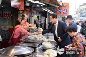 (케이엠뉴스) 의왕시는 10월 2일 추석 명절을 맞아 관내 전통시장인 의왕도깨비시장에서 장보기 행사를 개최했다고 밝혔다. 이번 행사는 민족 고유의 명절 추석을 앞두고 전통시장을 활성화하고 지역 상권에 활력을 불어넣기 위해 마련됐으며, 김성제 시장은 의왕도깨비시장을 찾아 상인들을 격려하며 상권의 애로사항을 청취하는 등 뜻깊은 현장 소통의 시간을 가졌다. 이 자리에서 김 시장은 의왕사랑상품권, 온누리상품권으로 제수 용품과 명절 선물 등을 직접 구매하는 등 전통시장 활성화에 앞장섰으며, 전통시장을 찾은 시민들과 명절 인사를 나누며 전통시장의 이용을 당부했다. 김성제 시장은 “앞으로도 지역경제의 중심인 전통시장이 더욱 활성화될 수 있도록 다양한 지원과 관심을 아끼지 않을 것”이라며, “앞으로도 시민과 상인이 모두 상생하는 지역경제 기반 조성에 힘쓰겠다”고 말했다.
