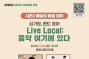 (케이엠뉴스) 의왕시 이팝아트홀(의왕시 왕곡로74)이 11월 22일 오후3시, 지역 예술인들이 함께 꾸미는 음악 축제 ‘Live Local:음악, 여기에 있다’를 개최한다. 이번 공연은 지역의 숨은 전문예술인을 발굴·지원하고 예술인 간 네트워크를 형성하기 위해 기획된 무대로, 시민들이 일상 속에서 가까이 음악을 즐길 수 있는 특별한 시간을 선사한다. 무대에는 의왕을 중심으로 활동 중인 밴드 ‘청아’와 싱어송라이터 ‘심가원’이 출연한다. 두 아티스트는 자신만의 감성과 음악 세계를 바탕으로 도시의 일상과 청춘의 순간들 따뜻한 멜로디로 풀어낼 예정이다. 밴드 ‘청아’는 서정적이면서도 에너지 넘치는 사운드와 깊이 있는 보컬, 따뜻한 선율로 관객의 공감을 이끌 예정이다. 심가원은 진솔한 가사와 부드러운 음색으로 사람 사이의 감정을 노래하며 공감을 전한다. 윤은숙 의왕시 문화관광과장은 “이번 공연은 지역 예술인들이 주체가 되어 시민과 호흡하는 뜻깊은 무대”라며 “많은 분들이 지역에서 피어나는 예술의 생동감을 즐기셨으면 좋겠다”고 말했다.