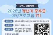 (케이엠뉴스) 부천시는 부천시보건소에서 중년 여성의 건강한 삶을 지원하기 위해 1월 9일부터 14일까지 갱년기증후군 예방프로그램 ‘다시 건강한 나’ 제1기 참여자를 모집한다고 8일 밝혔다. 프로그램은 갱년기증후군을 예방하고 관리할 수 있도록 체계적인 교육과 실습을 제공하며, 중년 여성의 신체적·정신적 건강을 높이기 위해 2022년부터 운영하고 있다. 제1기 프로그램은 부천시에 거주하는 45세 이상 65세 미만 중년 여성을 대상으로 2월 4일부터 4월 29일까지 매주 수요일과 금요일 오전 10시 30분부터 11시 30분까지 총 13주간 24회 운영한다. 내용은 사전·사후 건강검사, 갱년기 이론교육, 근력 강화 신체활동, 건강 식재료를 활용한 조리 실습으로 구성되며, 모든 프로그램은 무료다. 참여를 희망하는 대상자는 1월 9일부터 14일까지 포스터 하단 큐알(QR)코드를 통해 신청할 수 있으며, 모집인원은 30명으로 선착순 마감한다. 송정원 부천시보건소장은 “갱년기로 인한 신체적 변화와 정서적 어려움을 겪고 있는 중년 여성들이 이번 프로그램을 통해 건강한 일상을 회복하는 데 도움이 되길 바