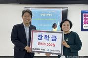 (케이엠뉴스) 라의숙 군포시 궁내동통장협의회장은 10월 1일 군포e비즈니스고등학교에 장학금을 전달하며 지역 청소년들의 꿈을 응원하는 뜻깊은 나눔을 실천했다. 이번 장학금은 라의숙 통장이 ‘궁내동 마을의제 발굴 경진대회’에서 금상을 수상하며 받은 상금 50만원 전액을 기부한 것으로 지역사회 발전을 위한 아이디어가 다시 지역 인재를 위한 지원으로 이어졌다는 점에서 더욱 의미가 깊다. 장학금은 군포e비즈니스고등학교 내 우수한 학생들에게 수여될 예정이다. 라의숙 통장은 평소 지역사회를 위한 다양한 활동에 앞장서며 교육·복지·공익 분야에서 꾸준한 기여를 이어오고 있다. 이번 장학금 기부 역시 지역 청소년들의 학업과 미래를 응원하는 실천적 나눔의 일환으로 그녀의 지역사랑이 고스란히 담겨 있다. 라의숙 회장은 “마을을 위한 고민이 다시 학생들을 위한 희망으로 이어져 기쁘다”며 “앞으로도 지역 청소년들을 위해 학생들의 학업 성취를 응원하는 지속적인 나눔활동과 관심을 이어가겠다”고 전했다.