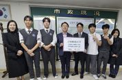 (케이엠뉴스) 군포e비즈니스고등학교 마케팅과 학생들이 ‘청소년 비즈쿨(Biz-Cool)’ 창업체험 교육을 통해 얻은 수익금 전액을 군포시청에 기탁했다. 학생들은 전문교과 ‘매장판매’ 수업에서 배운 내용을 바탕으로 상품을 직접 기획·판매하며 창업의 전 과정을 경험했으며 이를 통해 얻은 수익금을 자발적으로 모금해 지역의 어려운 이웃을 돕기로 뜻을 모았다. 장인섭 교장은 “배움을 실천으로 이어가며 지역사회에 따뜻한 마음을 전한 학생들이 자랑스럽다”며 “앞으로도 실력과 인성을 겸비한 인재로 성장할 수 있도록 지원하겠다”고 말했다. 군포시 관계자는 “학생들이 스스로의 노력으로 얻은 결실을 지역의 어려운 이웃을 위해 기탁하여 주심에 감사드린다”며 “이러한 청소년들의 선한 영향력이 군포 전역으로 확산되길 바란다”고 말했다. 기탁금은 경기사회복지공동모금회를 통해 군포 관내 저소득 가정 지원에 사용될 예정이다.