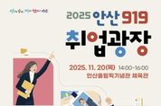 (케이엠뉴스) 안산시는 오는 20일 ‘2025년 11월 안산 919취업광장’을 안산올림픽기념관 체육관에서 개최한다고 5일 밝혔다. 이번 ‘안산 919취업광장’은 안산시일자리센터와 지역 일자리 유관기관이 협업해 진행하는 올해의 마지막 채용행사다. 시는 인력난을 겪고 있는 기업체에 우수 인력을 지원하고 취업을 희망하는 구직자에게는 일자리 기회를 제공하는 등 미스매칭 해소를 통한 만남의 장을 마련한다. 이날은 우수기업체 30여 개 사가 참여할 예정이다. 한편, 안산시는 지난 9월 경기도와 공동으로 ‘안산시 스마트허브 2040·경기도 5070 통합 일자리박람회’를 개최해 40개 기업 면접에 1,300여 명이 참여한 바 있다. 참가를 원하는 구직자는 박람회 당일 이력서 등 입사 지원 서류를 지참해 방문하면 ▲1:1 채용면접 ▲1:1 이력서 컨설팅 등 현장에서 희망하는 기업에 지원하고 면접에 참여할 수 있다. 일자리 기관별 취업 상담 및 재무 상담도 받을 수 있다. 참여 기업 정보와 박람회 일정 등 자세한 내용은 안산시청 누리집 ‘안산시 주요서비스-취업(일자리)정보’에서 확인하거나, 안산시일자리센