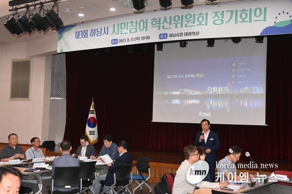 (케이엠뉴스) 하남시는 17일 시청 본관 대회의실에서 ‘제3회 하남시 시민참여혁신위원회 정기회의’를 열고 청년 실업률 개선을 위한 실질적 대안 마련 등 민선 8기 공약 이행 100% 달성을 위한 방향에 대해 논의했다.